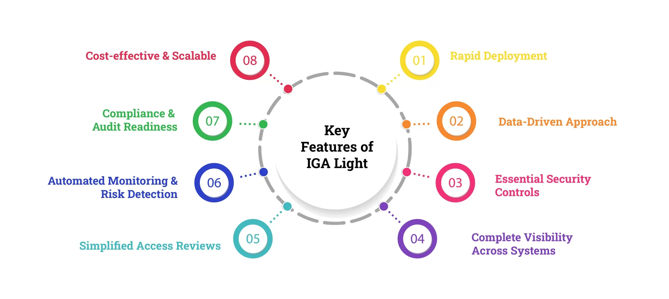 Rather than offering exhaustive IGA functionalities, IGA Light focuses on core security measures, such as: