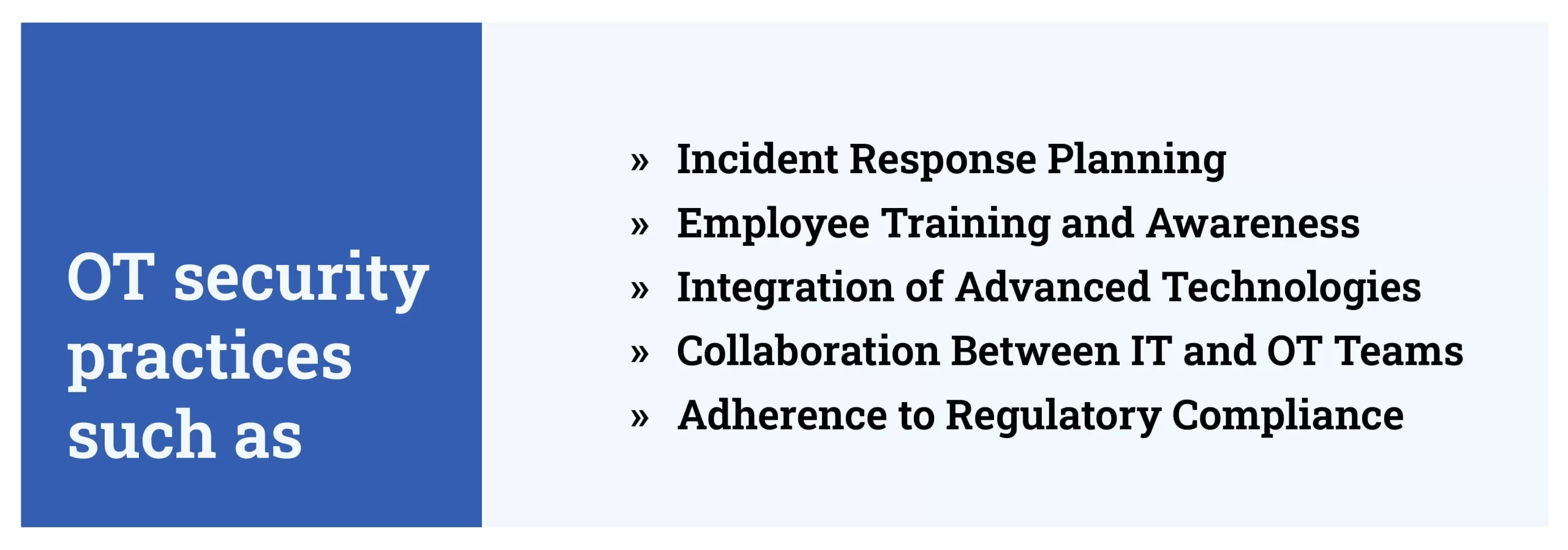 Organizations must keep in mind strategic OT security practices such as: