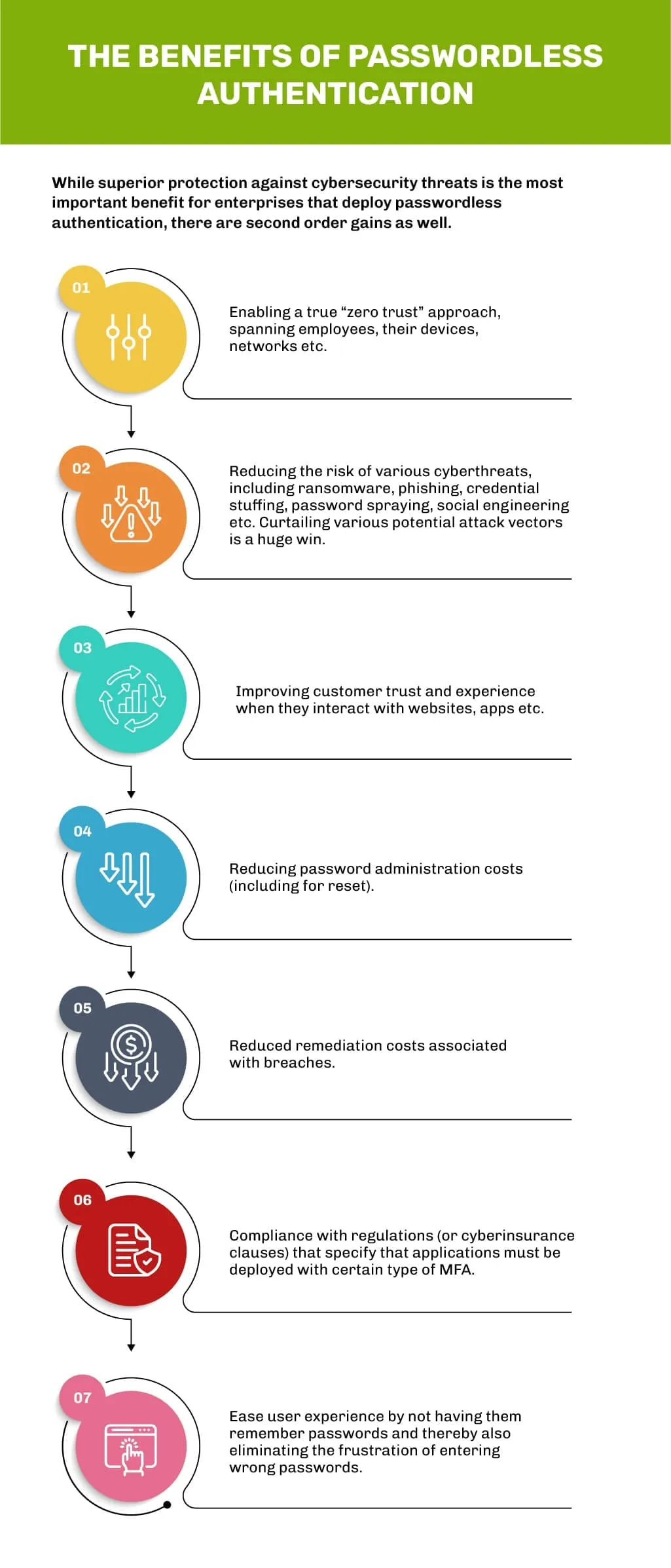 To paraphrase Stephen Covey, when you pick up one end of a stick, you pick up the other end as well. This prescient observation applies to digitalization as well. Across industries, as B2B, B2C and D2C enterprises embrace higher levels of digital transformation, the quantum and scope of security risks associated with “digital” also increase. For decades, passwords have been used to authenticate user identity prior to allowing them access to various applications and software systems. Employees, business partners, customers, and other service providers all need to be authenticated.