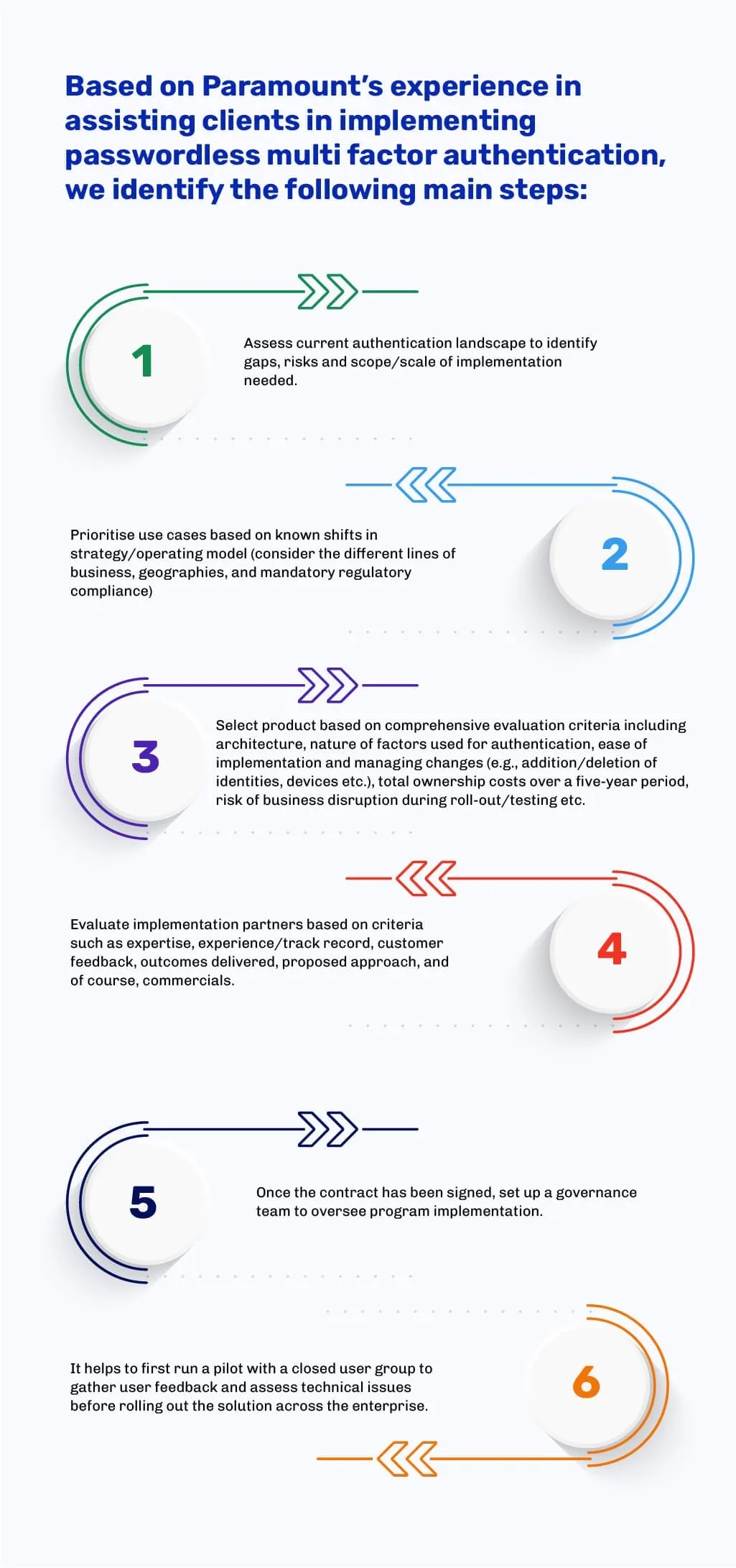 In order that your enterprise optimizes the benefits of passwordless authentication, you need to take it up as a well-defined project that includes properly documented objectives and specific use cases, scope of work, and business case (expected benefits and investments). You then also need to constitute a program team to oversee vendor/product selection, road mapping and planning and project management.